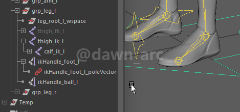 Because we had remove leg IK handle before, so we need to rework the Pole Vector handle again after the new leg IK system finished.